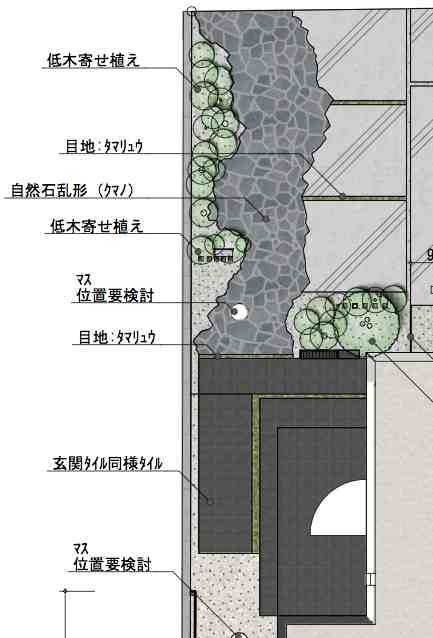 もう少し手前に持ってきて 遊歩道というか アプローチ的な回遊性を