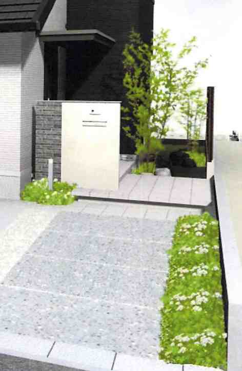 両脇に植栽を配して 若干小道調にしています