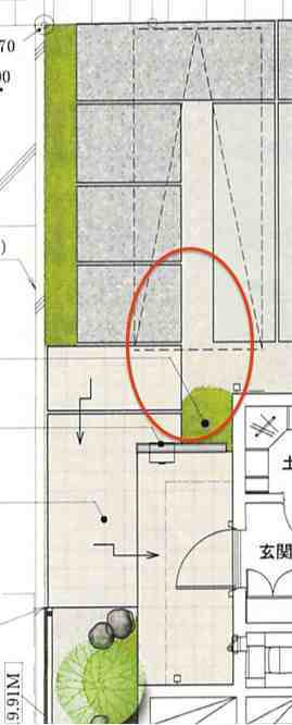 前に植栽をおけないか(とくにこの赤い部分)
